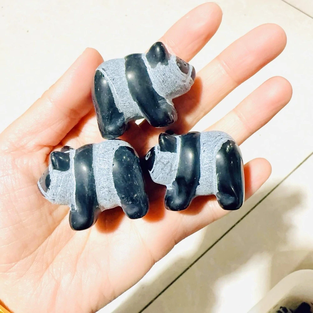 Ručně vyřezávaná figurka pandy z černého obsidiánu.