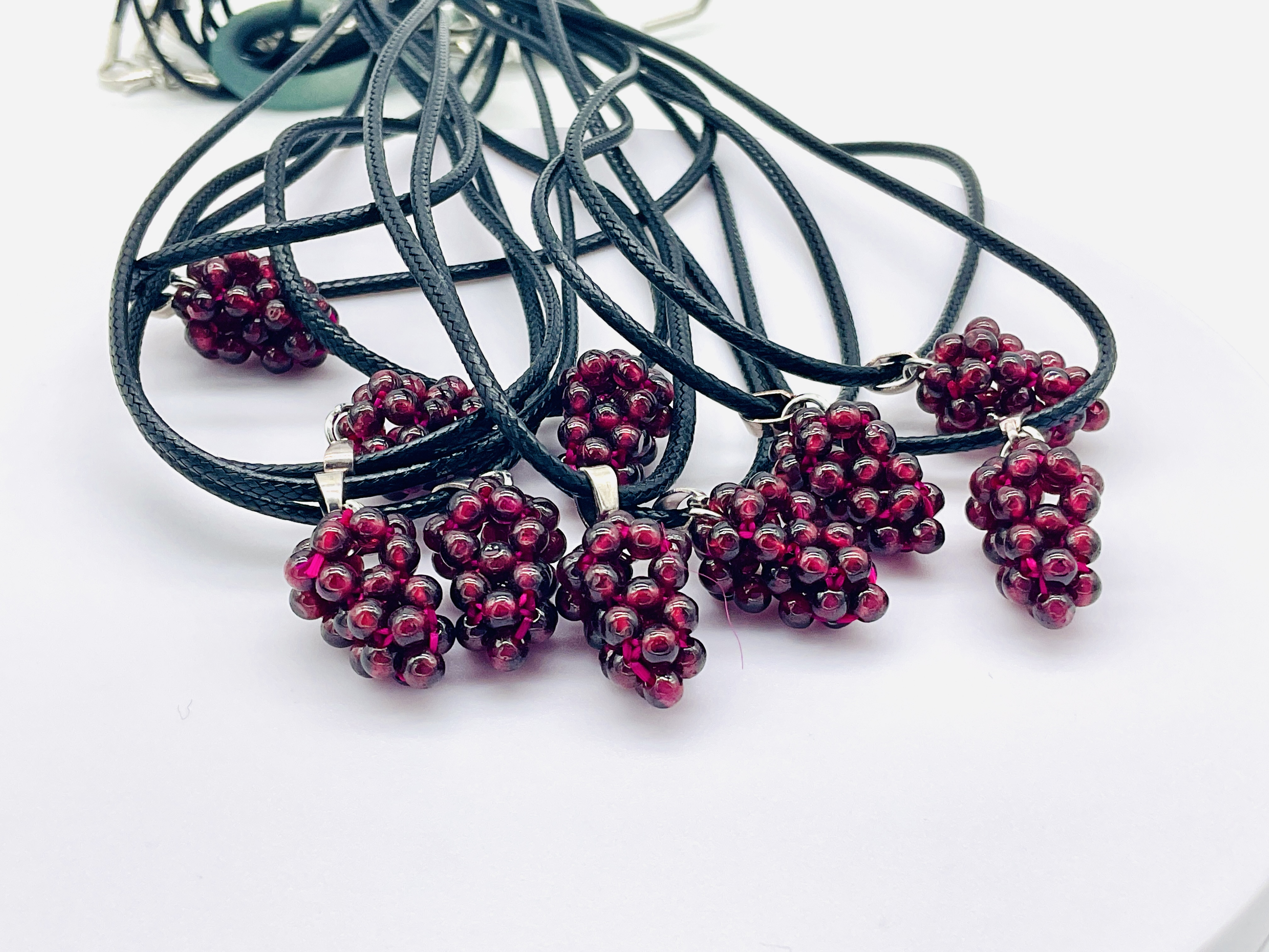 Přívěsek z granátových kuliček ve tvaru hroznu.