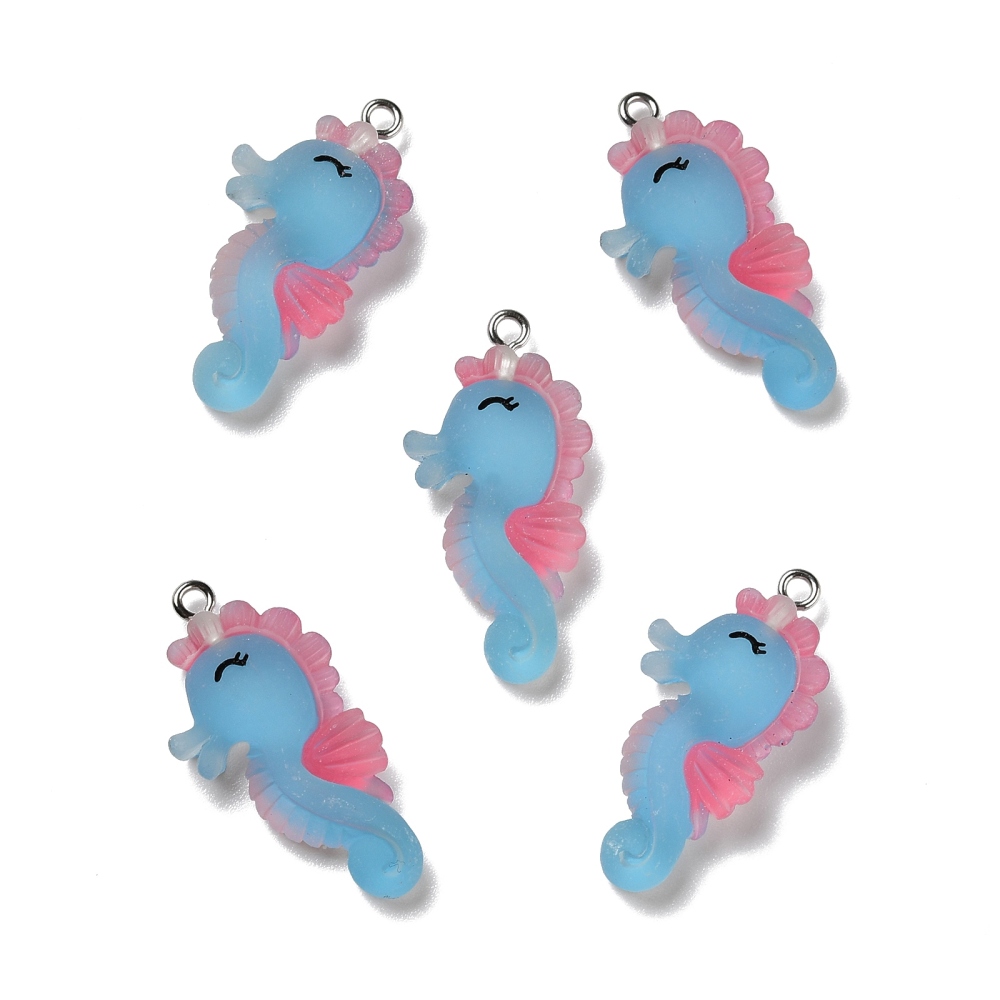 Popis: Neprůhledné přívěsky z pryskyřice, s platinovými železnými smyčkami, matné, mořský koník, tmavě modrá Velikost: asi 0,67 palce (17 mm) široká, 1,34 palce (34 mm) dlouhá, 0,22 palce (5,5 mm) tlustá, otvor: 0,08 palce (2 mm).Řetízek 50 cm.