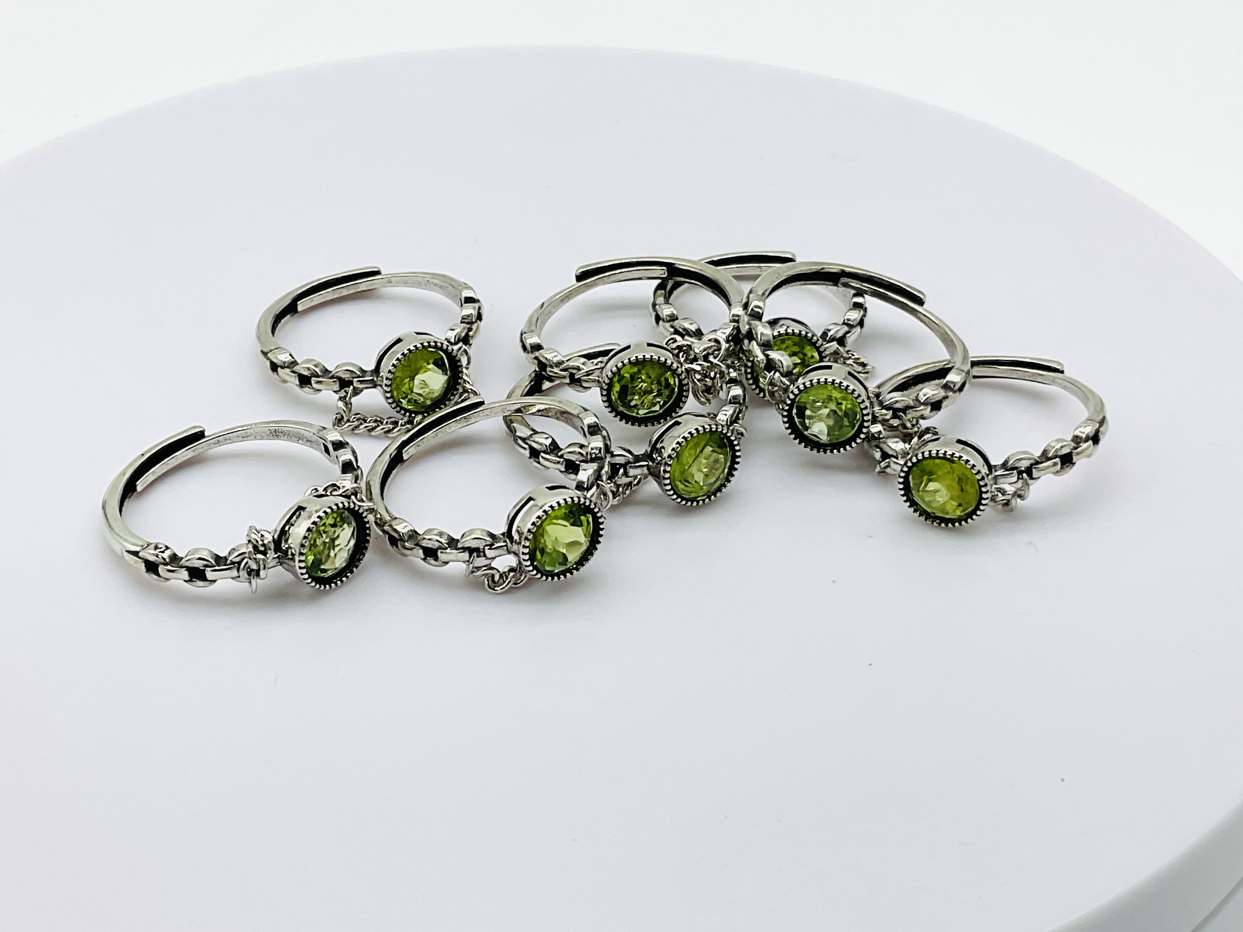 Prstýnek s přírodním olivínem-nastavitelný.Prstýnek je z bižuterního kovu -tombaku(postříbřená mosaz).