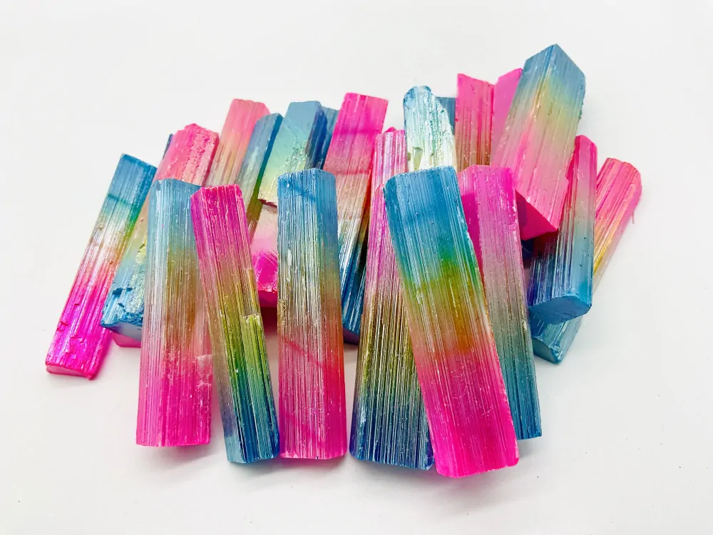 Selenit galvanizovaný,je potažen 2~3 druhy vzácných minerálů které tvoří to,co vidíte na obrázku.